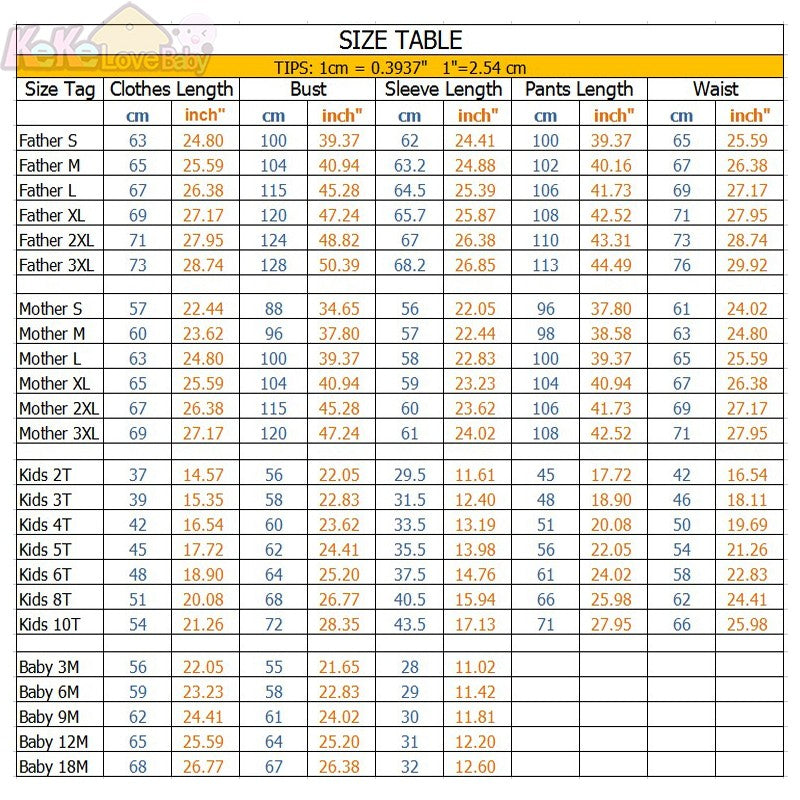 Tamanhos disponíveis: Mamãe (S–3XL), Papai (S–3XL), Kids (2T–12T), Bebês (3M–18M)